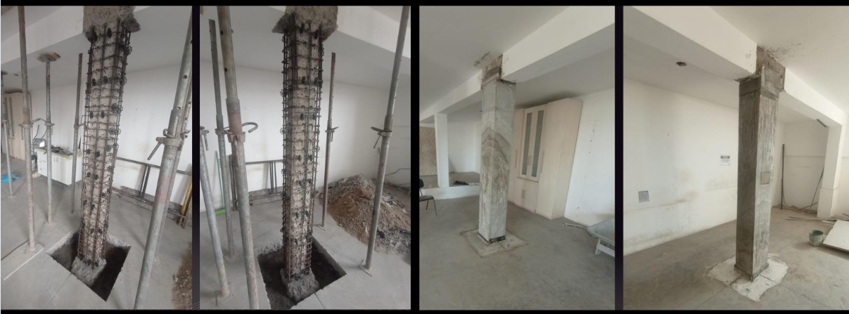 Reforço de lajes, vigas e pilares com fibra de carbono e concretagem injetada, conforme NBR-6118.